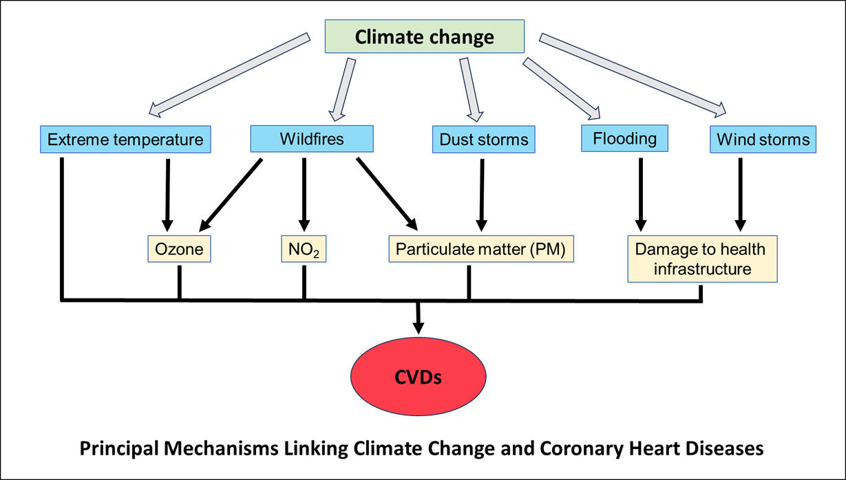 air temperature, wildfires, dust storms, flooding and wind storms contribute to: