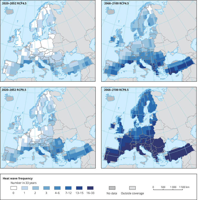 significant increases in heat wave frequency for almost all regions between the