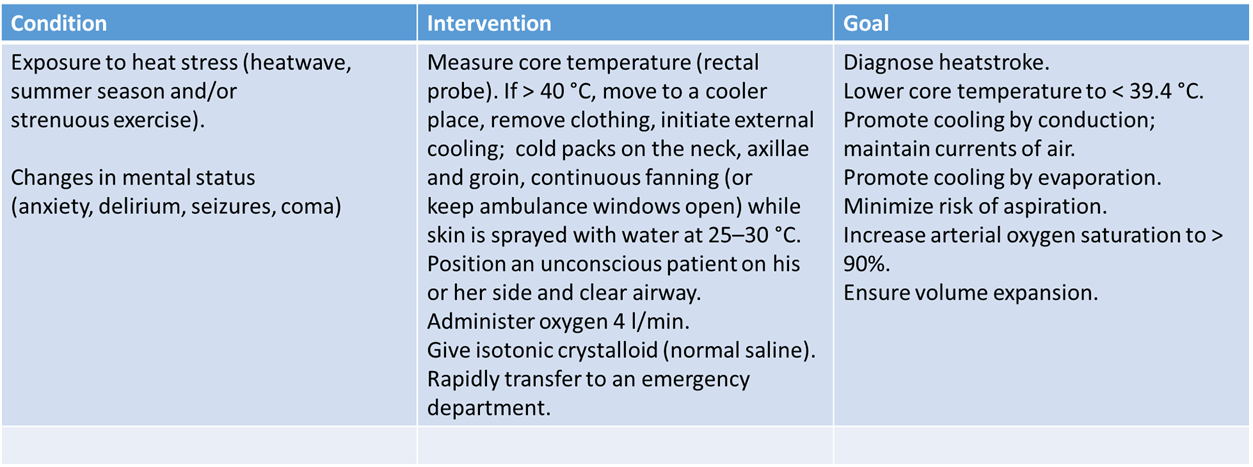 Ø If heatstroke, follow the guidelines of special emergency
